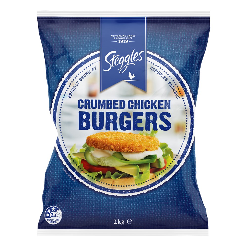 STEGGLES CRUMBED CHICKEN BURGER 85G (12'S)